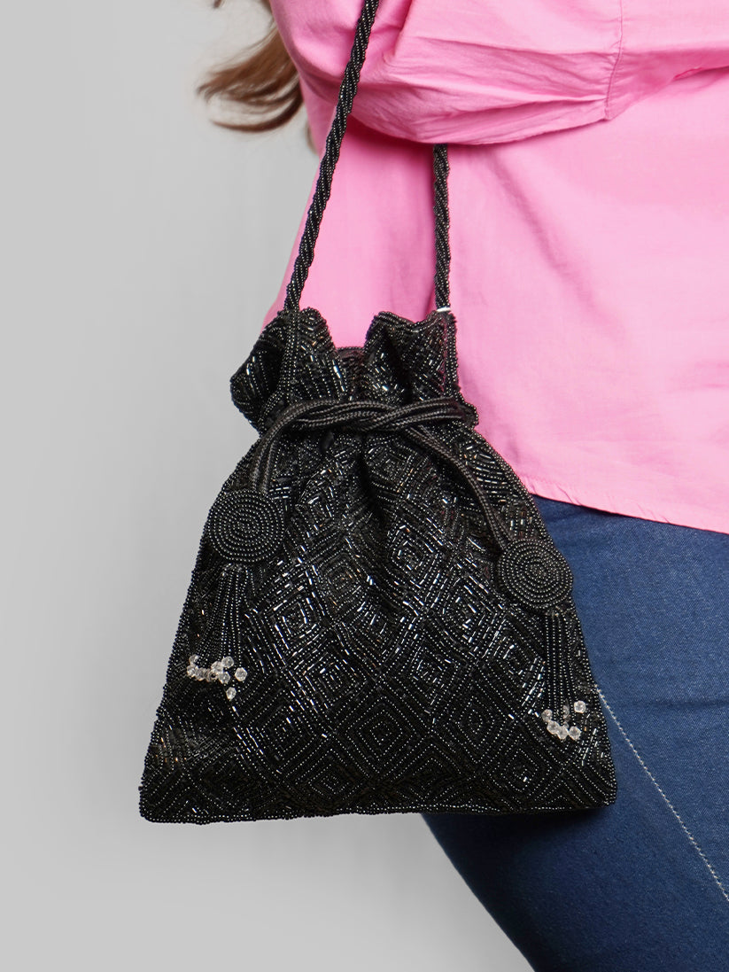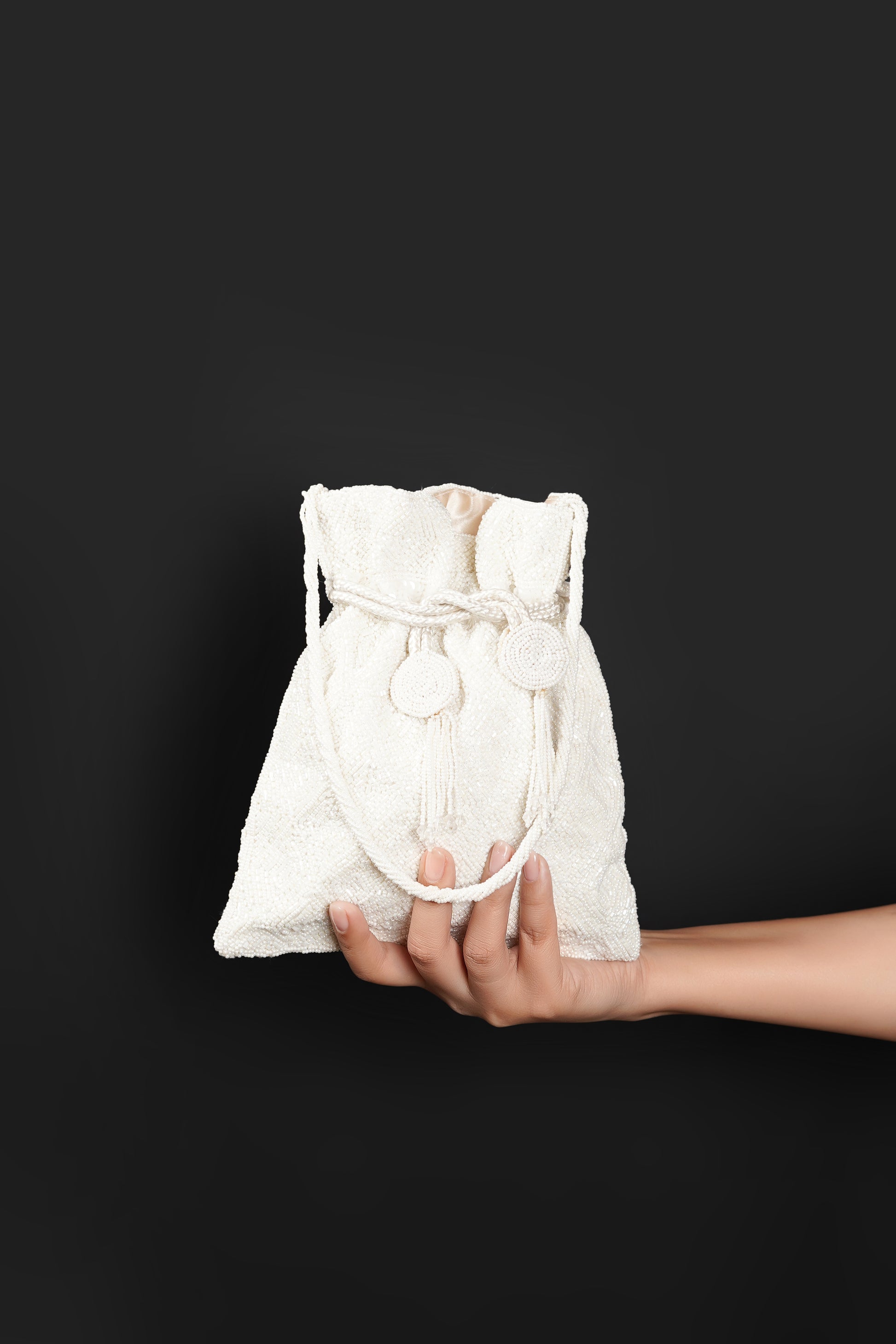 The Neil Cut Dana Bead Potli is designed for those who love to shine without saying a word. Meticulously handcrafted with shimmering cut dana beads, this potli brings a refined brilliance to your ensemble—whether it’s a cocktail night, wedding celebration, or festive gathering. Its rich texture and intricate beadwork make it a standout accessory that feels both luxurious and modern.