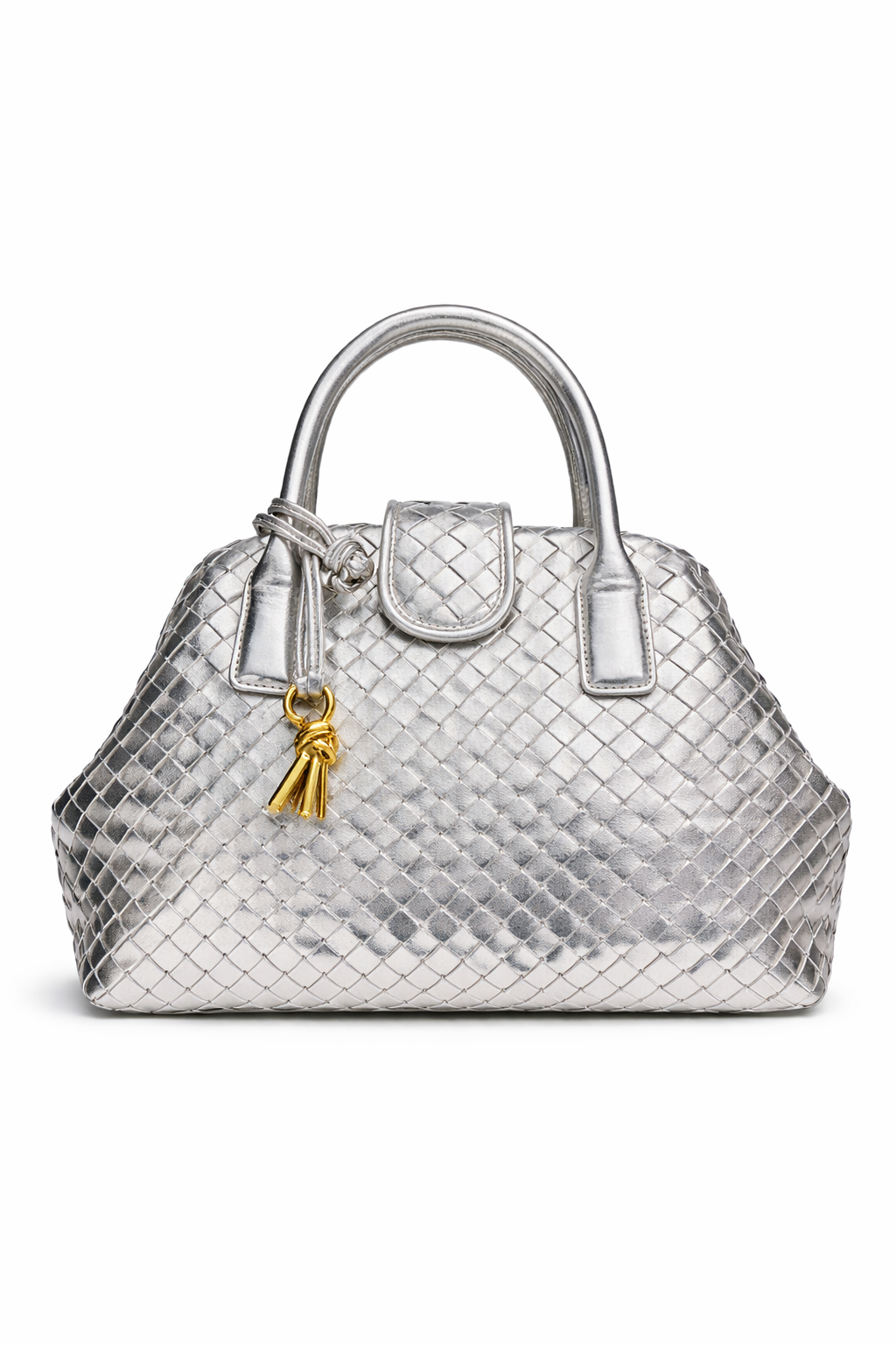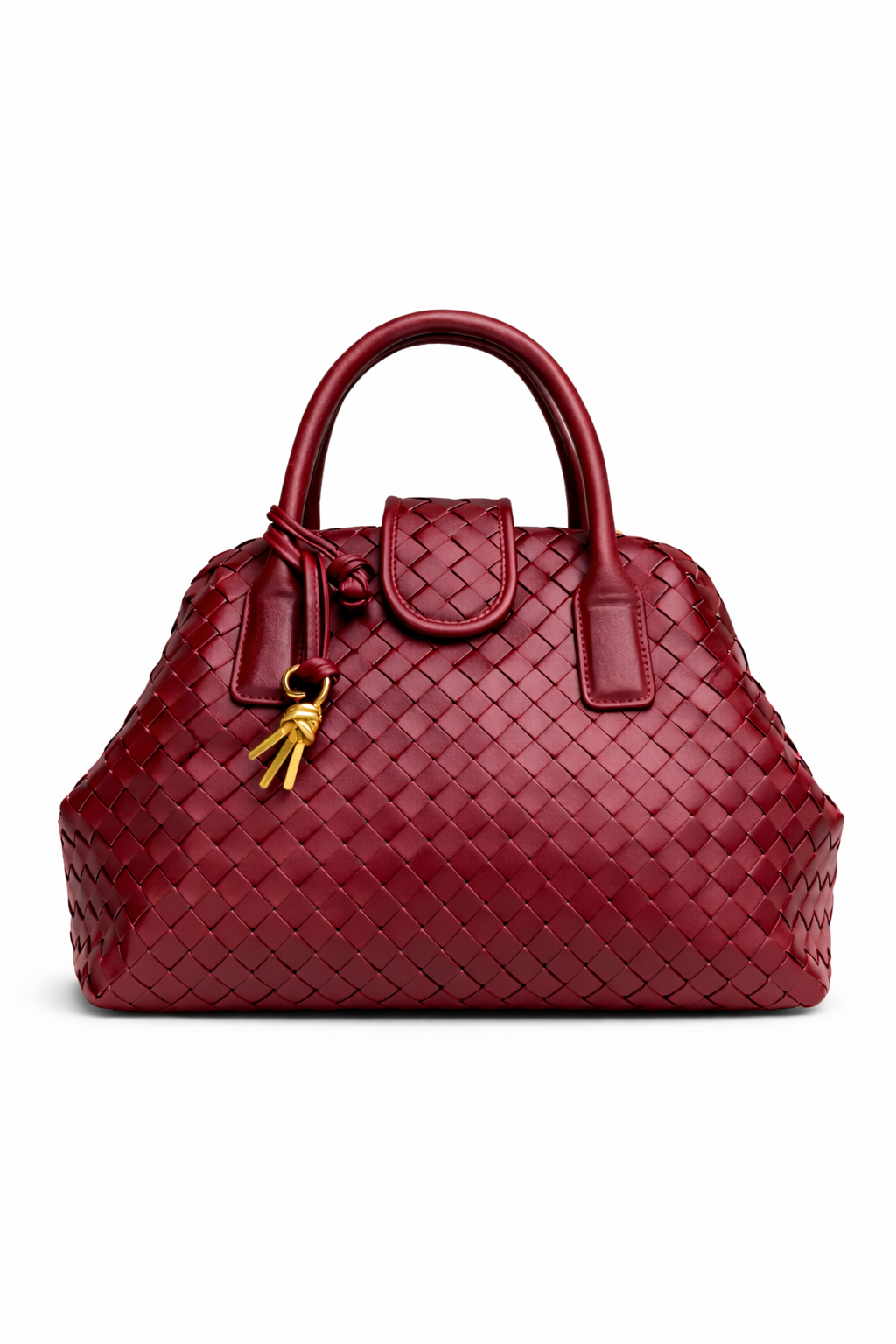 A statement piece that beautifully blends traditional inspiration with contemporary elegance. This handcrafted handbag features an intricate woven texture that adds depth and sophistication to its structured silhouette.
