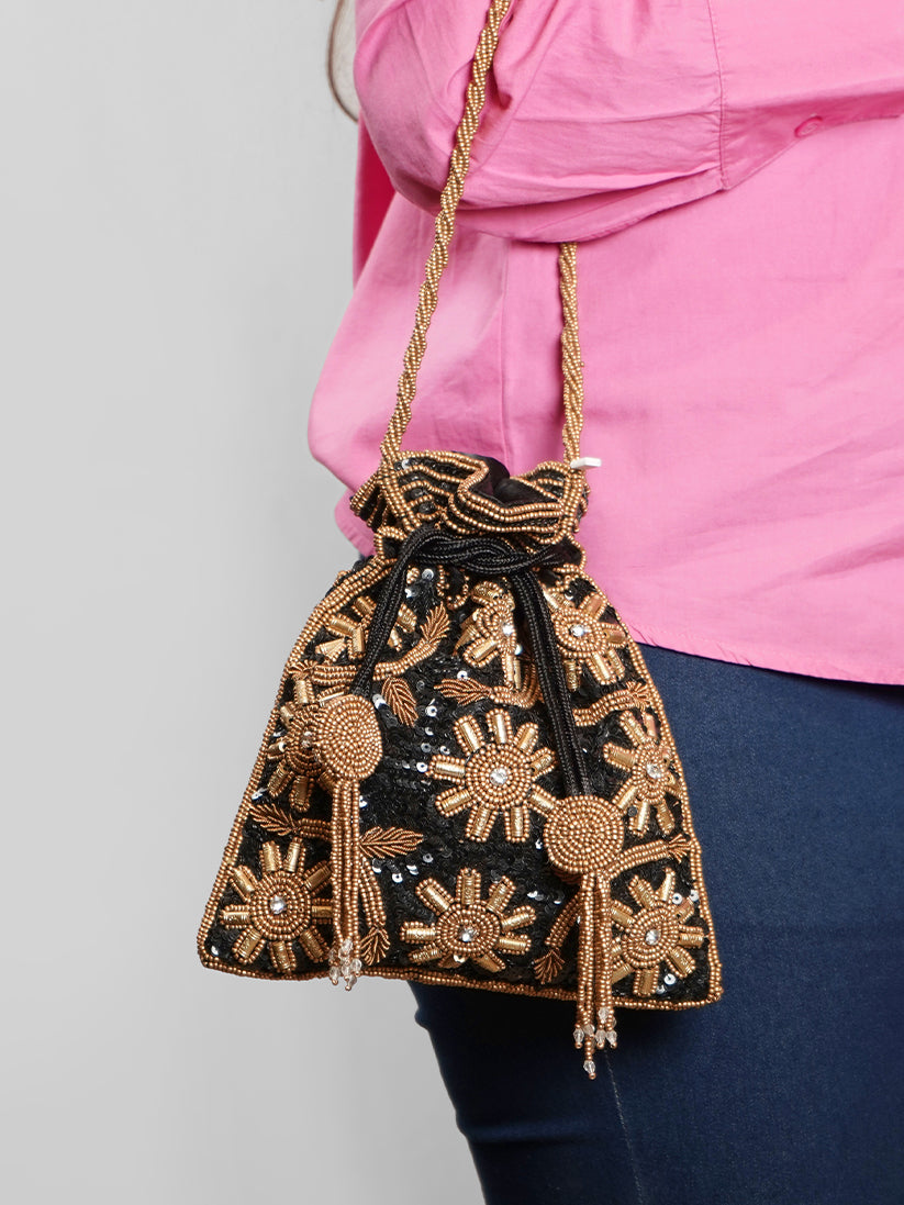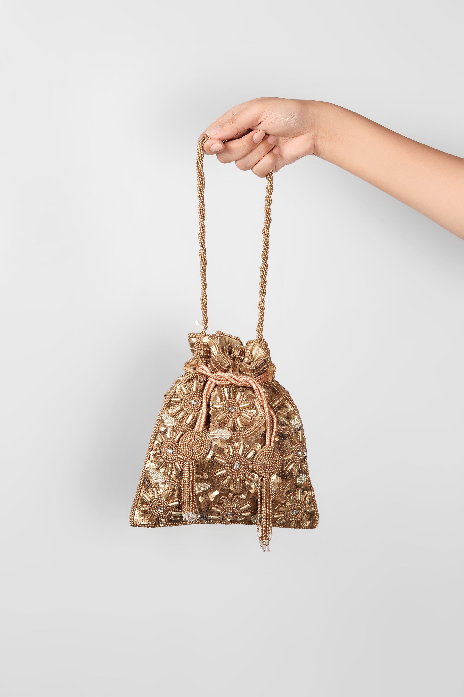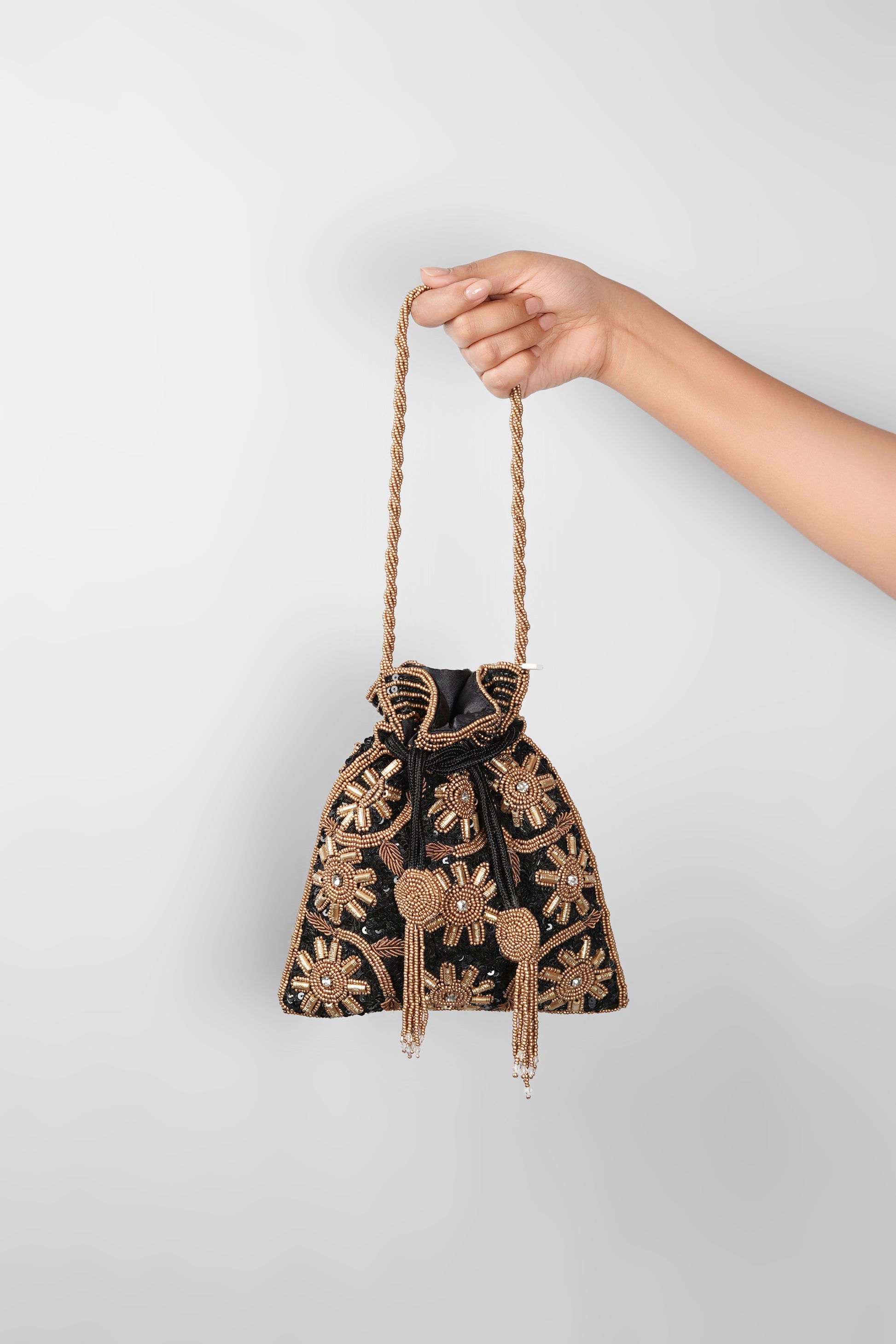 Step into the spotlight with the Opulent potli, a true celebration of grandeur and grace. Designed for the modern woman who appreciates timeless craftsmanship, this piece features rich textures, intricate embellishments, and a royal finish that instantly elevates any ensemble. Whether you're attending a wedding, festive gala, or evening event, Opulent brings the perfect balance of elegance and utility.